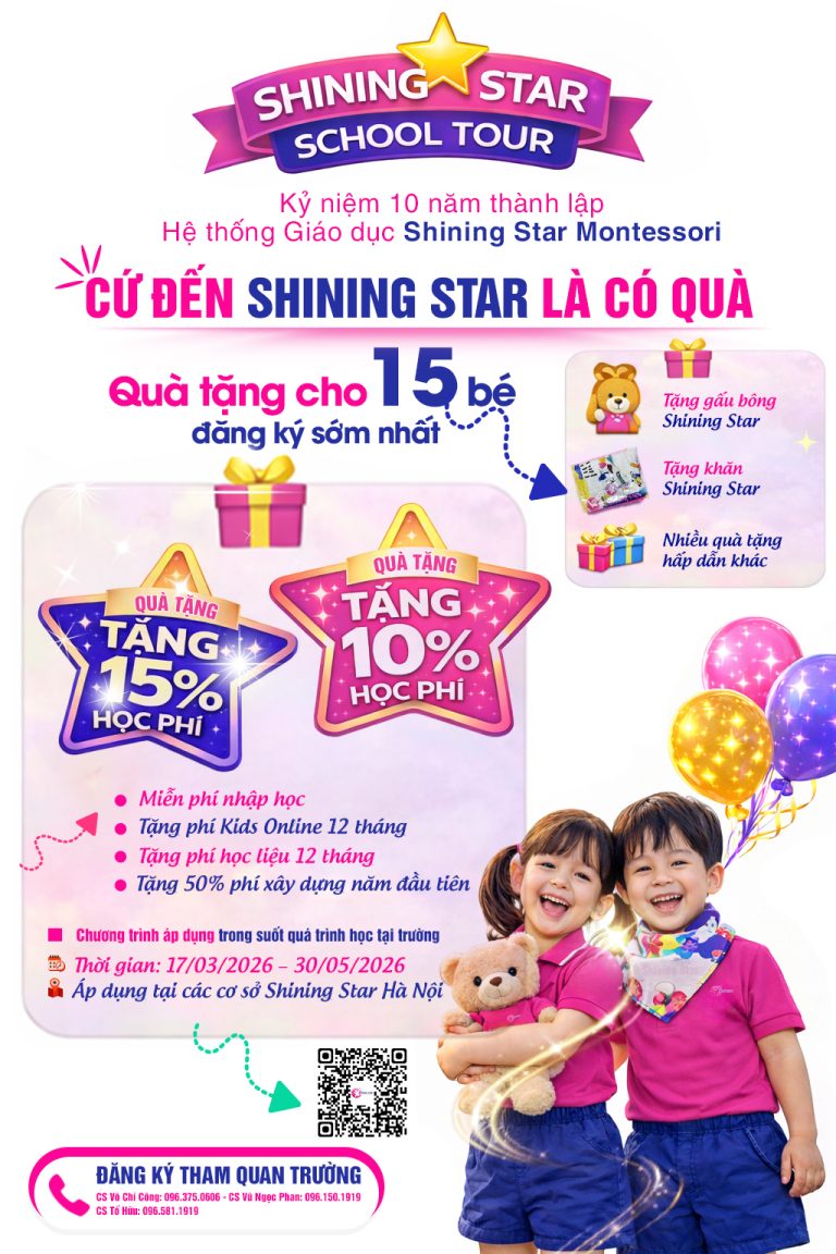 Trường mầm non Shining Star là một lựa chọn lý tưởng cho sự phát triển và giáo dục của con yêu. Hãy cùng tìm hiểu những lí do tại sao Shining Star nổi bật và đáng tin cậy.