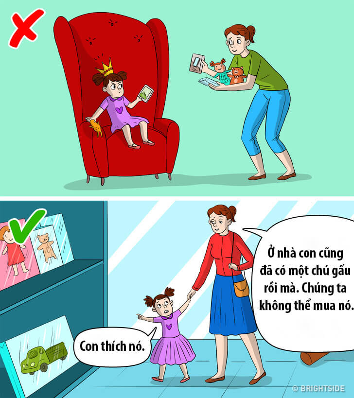 Cha mẹ thường tỏ ra không đồng tình khi nhìn thấy con khóc lóc, tức giận hoặc ném đồ chơi đi.