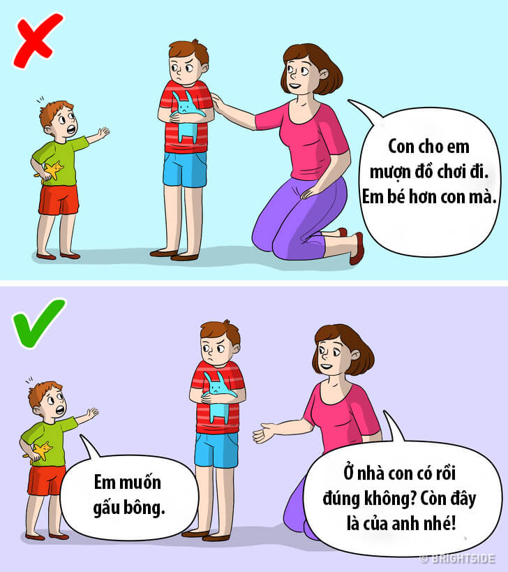 Các nhà tâm lý học khuyên cha mẹ nên đặt mình vào vị trí của trẻ. Bạn có muốn chia sẻ đồ đạc cá nhân của mình với một người bạn hầu như không biết?